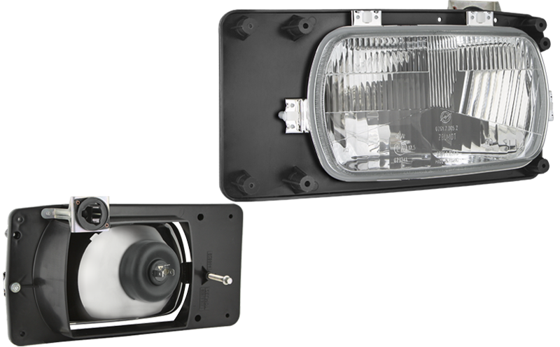 Phare avant type H4 - droit, sous le correcteur électrique (feux: de croisement, de route, de position)