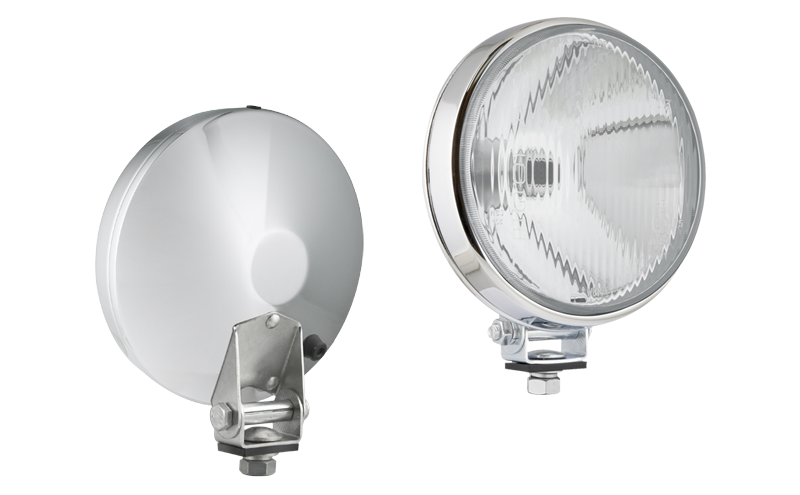 Phare halogène de route dans un boîtier métallique chromé