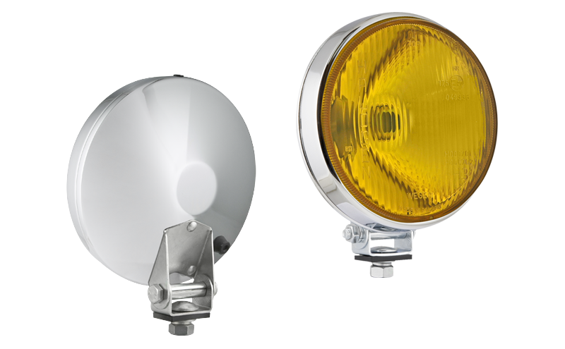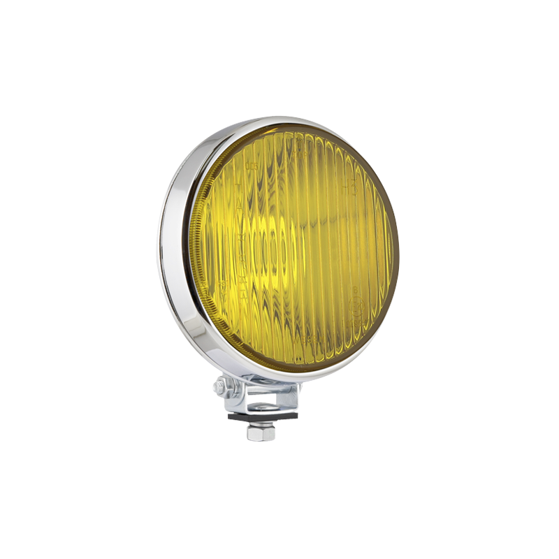 Phare halogène de route dans un boîtier métallique chromé - jaune