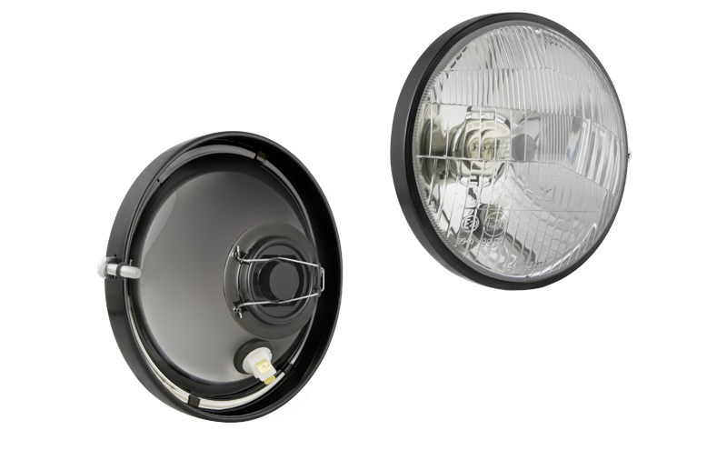 Insert de phare type H4 avec cadre métallique - droit (feux: de croisement, de route, de position)